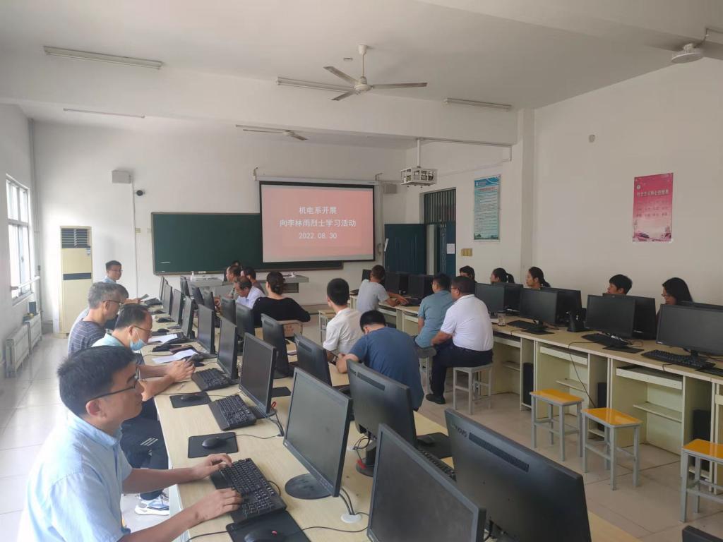 为了深入学习烈士英雄事迹,大力弘扬英烈精神,激励全系老师以更加昂扬的奋斗姿态投入到工作中,机电技术工程系在8月30日开展向李林雨烈士学习活动。