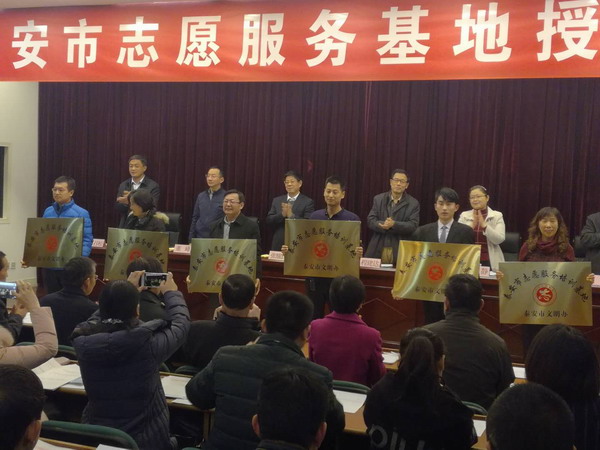 12月5日,泰安市志愿服务基地授牌仪式在市政大楼B201会议室举行,命名13个单位为“泰安市志愿服务培训基地”,命名18个单位为“泰安志愿服务实践基地”。经过学院志愿者的共同努力,我院被命名为“泰安市志愿服务培训基地”。